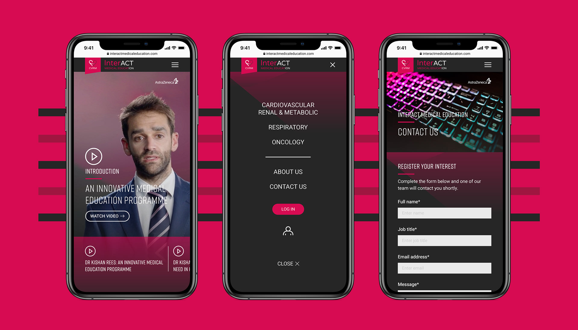 InterACT/AstraZeneca video themed medical education website design – on behalf of OmniaMed Communications Agency